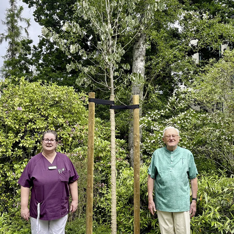 Prof. Klaus Kämpfe hat dem St. Elisabeth-Krankenhaus eine Silberlinde gespendet, die jetzt einen schönen, ruhigen Platz in unserem Park hat. Diese Geste verschönert die Umgebung und bietet einen angenehmen Ort der Erholung für Patienten, Besucher und Mitarbeitende. Wir danken Prof. Kämpfe herzlich für seine Unterstützung!